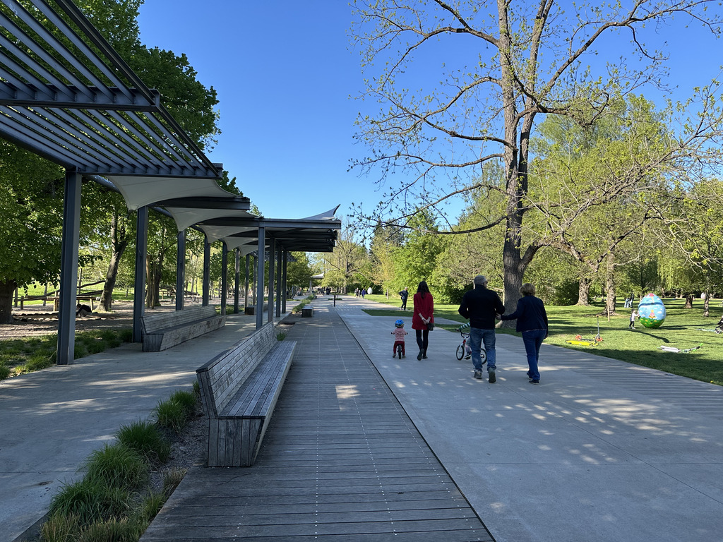 V pátek jsme vyrazili do Dejvic. Prvním cílem bylo hřiště v Parku Lotyšská. Tam jsme nebyli poprvé (a rozhodně ne naposled): hřiště nabízí klasické houpačky a prolézačky, plácek na basket a hlavně velké pískoviště, kde je k dispozici i hromada místních hraček.