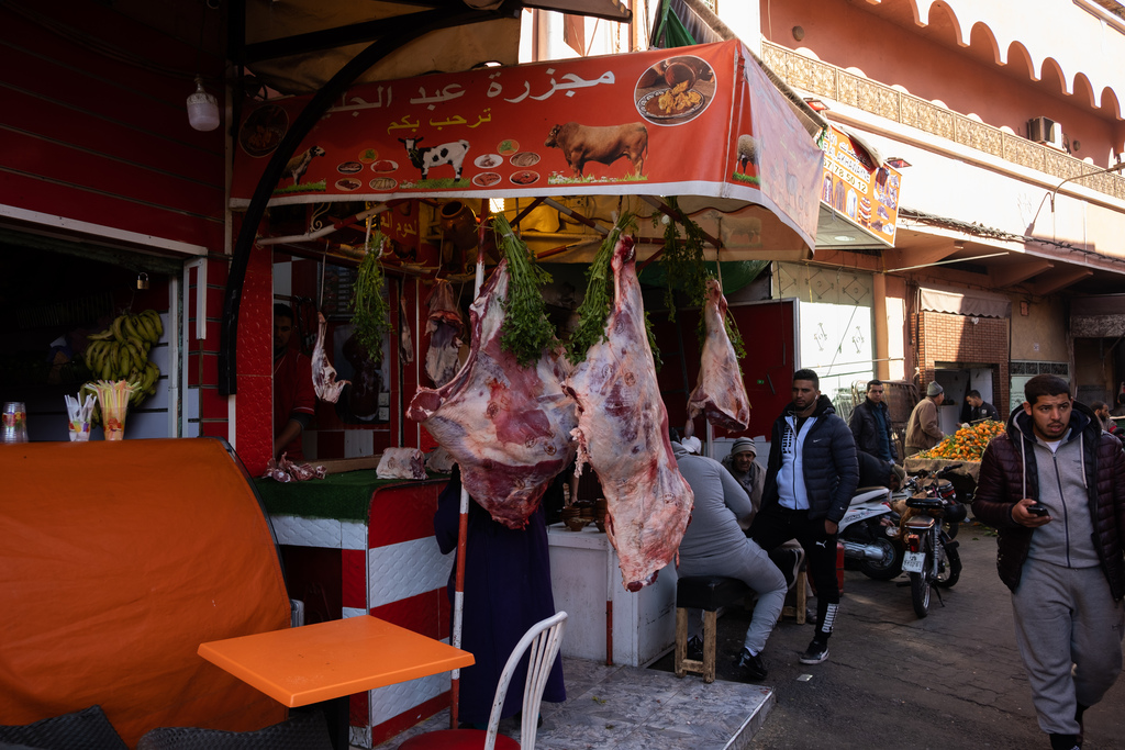 Na středu jsme měli zamluvenou prohlídku Mediny s průvodcem – vybráno na AirBnB experiences, což se nám předtím už osvědčilo. Doufali jsme, že bude procházka přínosem – ono v těch klikatých uličkách hodně snadno něco přehlédnete a o tom, že se nejspíš ztratíte, ani nemluvě. Dorazili jsme (zase taxíkem, tentokrát za 12) s malým předstihem, tak jsme šli ještě na kávu – do místní kavárny, samozřejmě, nepůjdeme do turistické:-) Jsou tu celkem na každém rohu, trochu připomínají ty španělské nebo řecké: Jednoduché stolky, žádné extra zdobení, servírují prakticky jen kávu a čaj, jen tak v půlce případů Coca colu a spol. Káva stojí podle cedule 5 MAD, i když my platíme dvackou dvě a zpátky nedostaneme, moc nám to neva sąmozřejmě z hlediska peněz, ale tohle automatické až arogantní chování se nám moc nelíbí. Sedneme si ke vchodu, jako místní. V kavárně jsme nikdy neviděli žádnou ženu, jen muže, ve většině případů jen tak samostatné, vždy sedící jedním směrem – uvnitř směrem k televizi (většinou s fotbalem), venku směrem do ulice. Nikdo nesedí opačným směrem 🙂 Káva stejná, jako jsme měli už několikrát: trochu chutí připomíná vietnamskou, zřejmě je to robusta. Pak jsme se ptali průvodce – většina kávy pochází z Brazílie a Kolumbie. Dřív se tu taky pěstovala, ale prý to hlavně finančně nestálo za to.